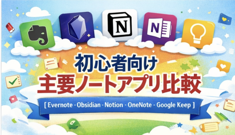 初心者向け主要ノートアプリ比較【Evernote・Obsidian・Notion・OneNote・Google Keep】